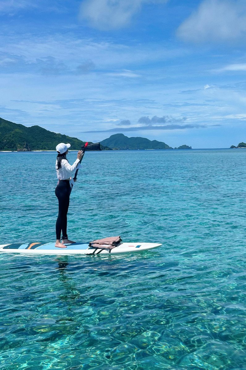 座間味島でSUP🏄‍♀️☀️ 海の上で見る景色が最高すぎる! 日焼けしたけど、こんな青なら何度でも。 #SUP女子 #沖縄の海 #座間味島 pic.x.com/REHlufJsYo