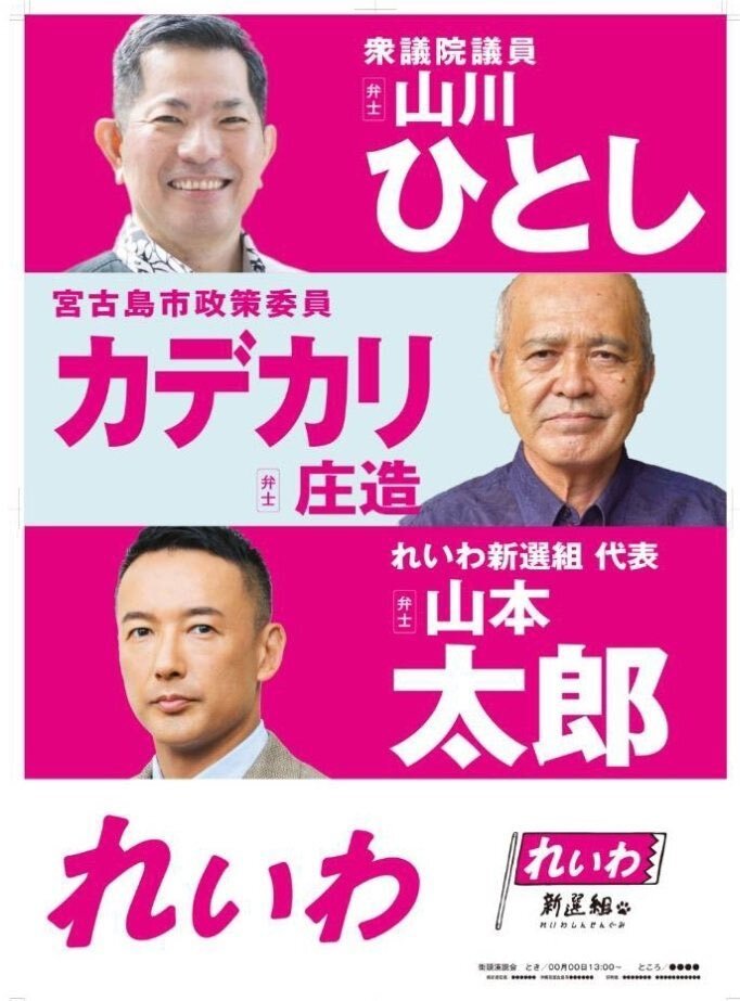 #れいわ新選組 🐾 #沖縄県 #宮古島市 #宮古島市議会議員選挙 告示2025.10.19 投票10.26 公認候候補 #カデカリ庄造 応援@reiwa_naha78 👀 reiwa-shinsengumi.com/member/jichita… ※期日前投票の会場city.miyakojima.lg.jp/soshiki/senkyo… 10/19 x.com/reiwa_naha78/s… 10/19 x.com/aika_shimojo/s… pic.x.com/w7tg0snnRa