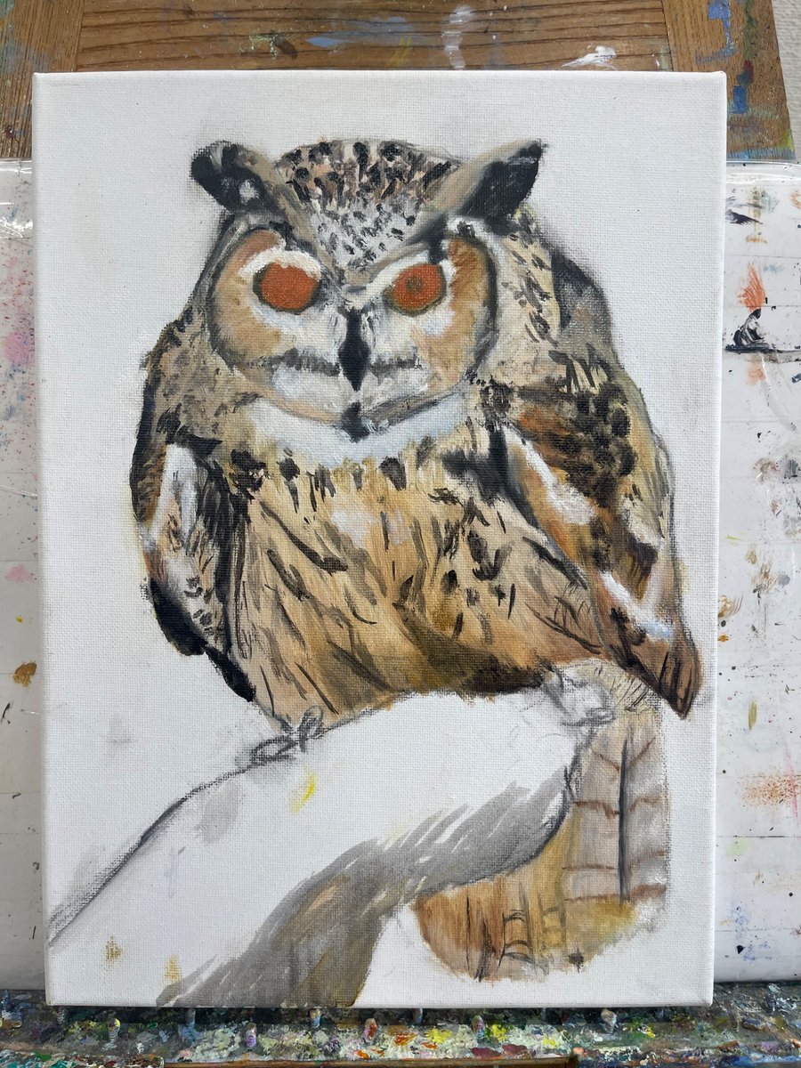 まえの続き〜黒色がガッツリ入ったよ!うまく続いてくれるかな〜? #油絵 #絵画 #ワシミミズク pic.x.com/tK2nqW3w1h