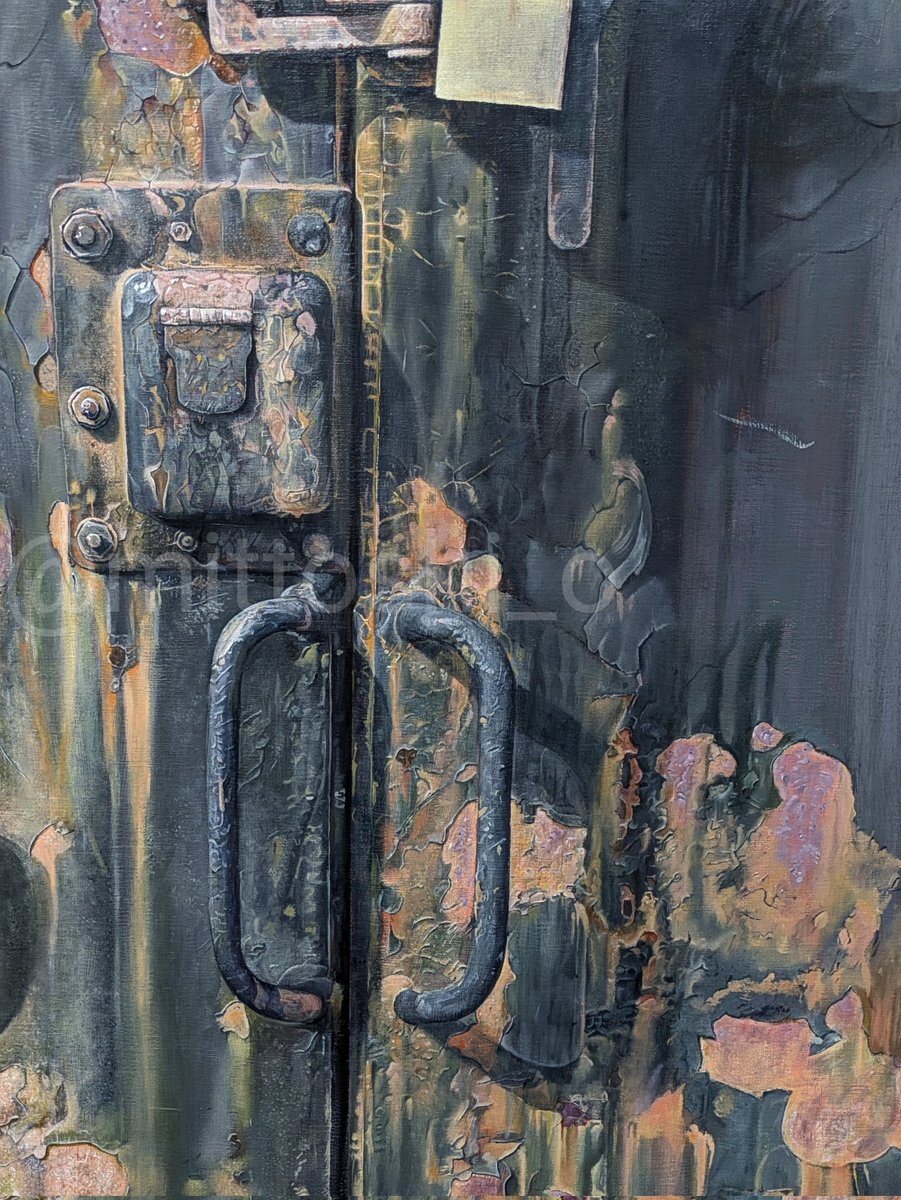 もう何か月も錆とか塗装の剥がれだとか描いている…まだまだ終わりが見えない。 #WIP #油絵 pic.x.com/LcdBzG4jqa