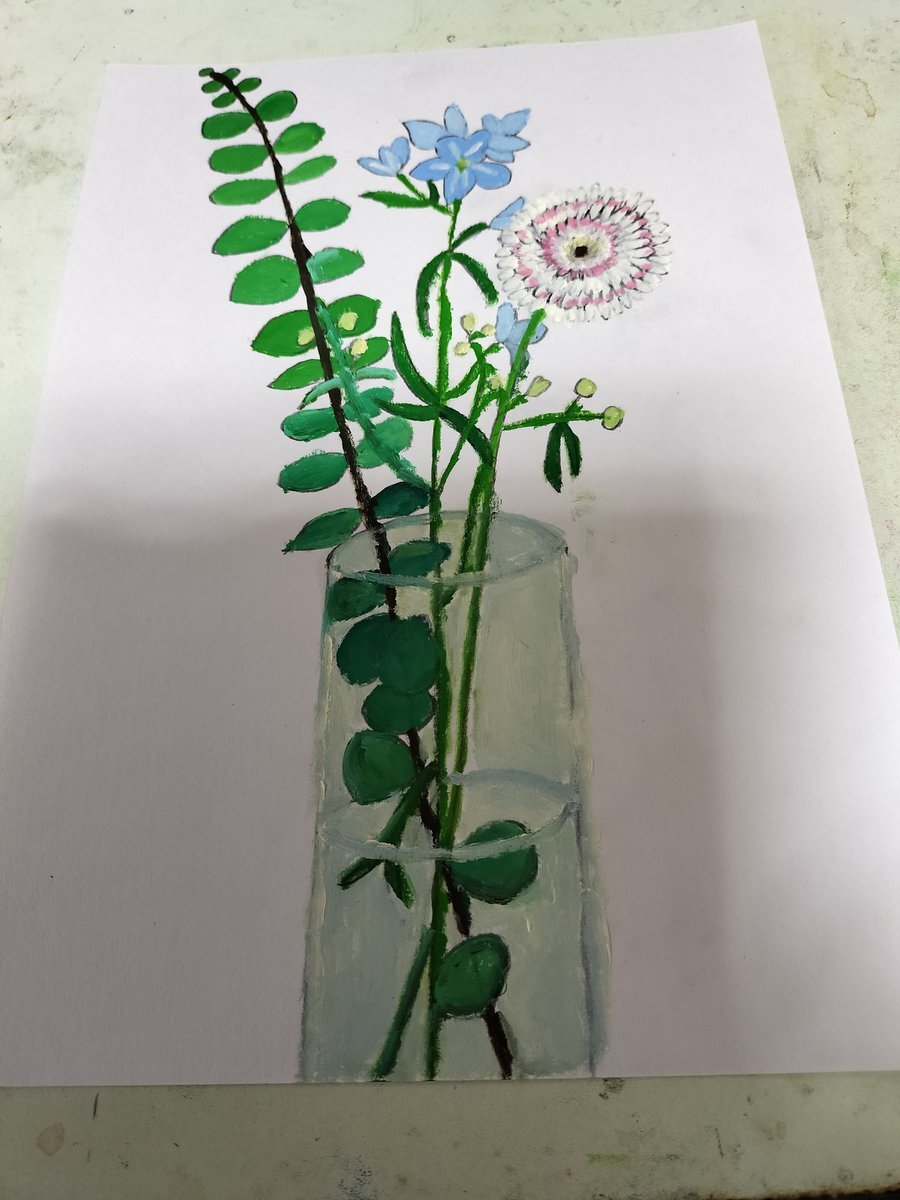 #絵描きさんと繫がりたい #メルカリ #油絵 最新作です✨ ガーベラとデルフィニュームとユーカリの作品です。 乾いたらメルカリ出品予定です。 次回作からは、花や観葉植物🪴以外の作品を描くかもしれません。 pic.x.com/jTqTEOb3Qs