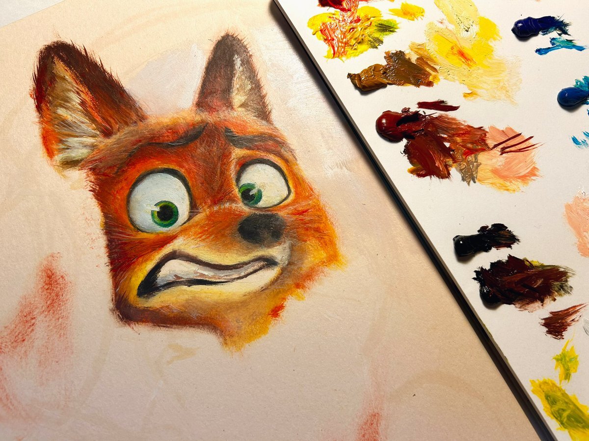 久々に油絵したけどへたっぴ 綺麗な塗り一生出来る気がしない #ズートピア2 #模写 #油絵 #Zootopia2 pic.x.com/2vcYVa8XBN