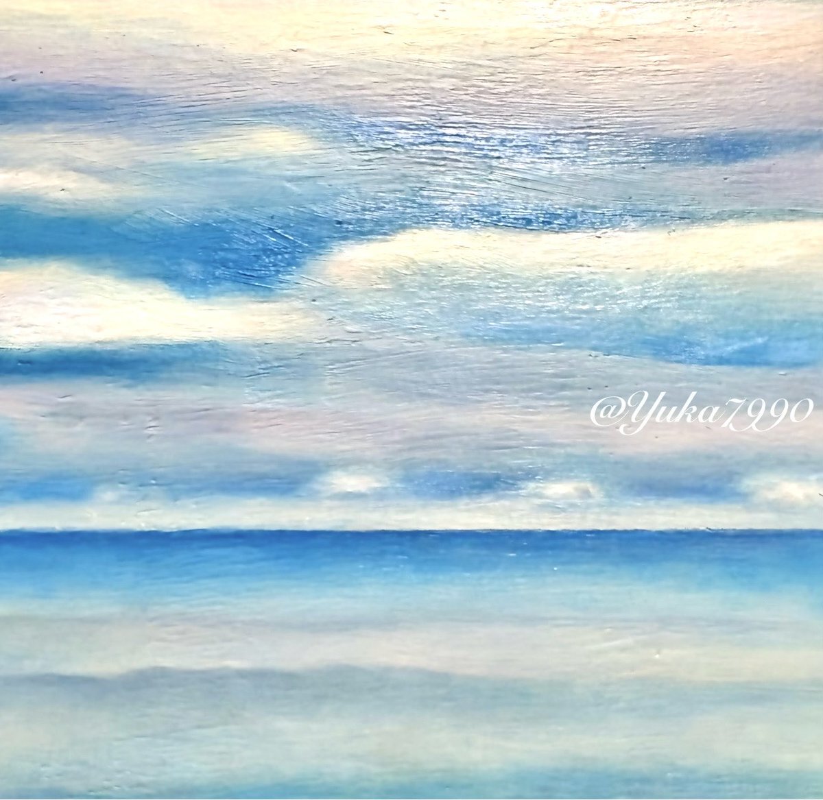 やっとこさ次の段階へ ☁️と🌊、時間がかかりましたが…綿あめみたいにふんわりした雰囲気が好きな感じ☺️ #油絵 #アキーラ #風景画 pic.x.com/5IO7TOe2tO