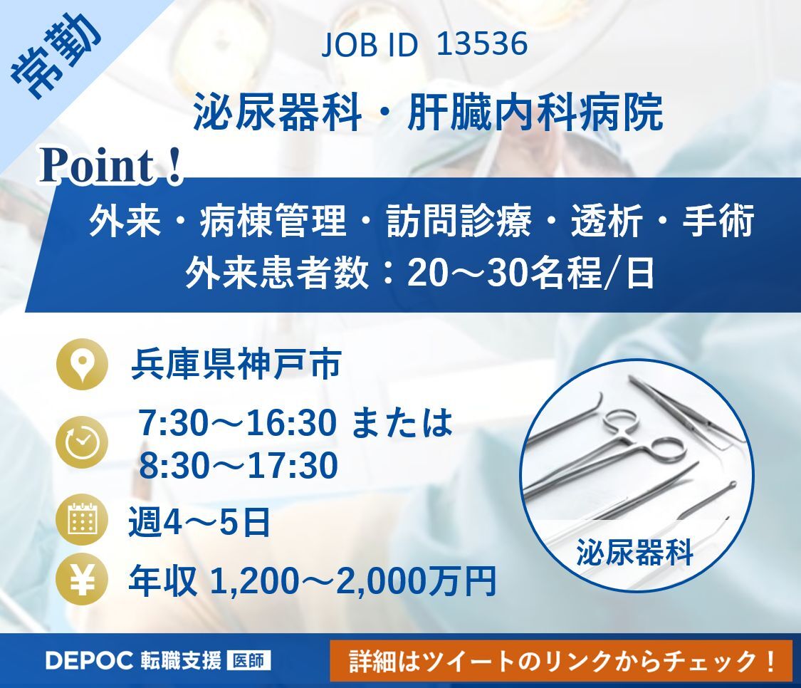 医師の相談相手デポック 人材チームのしおです👩🦰 泌尿器科 常勤医の募集 ・募集背景:欠員 ・訪問診療については泌尿器患者への訪問 ・泌尿器科の専門性をお持ちの先生 #兵庫県 #神戸市兵庫区 #泌尿器科 #医師求人 #医師転職 🔽求人詳細・お問合せ → buff.ly/TJpPOmh pic.x.com/K2Tr73jGcI