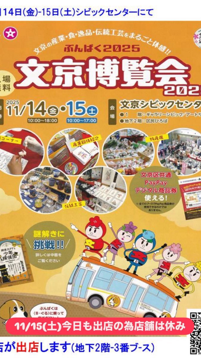 11/15(土)今日も文京博覧会@シビックセンターへ出店の為、店舗は休業いたします。 明日からは平常となります。 よろしくお願いします。 #文京博覧会 #趣味の園芸と陶器山竹 #波佐見焼 pic.x.com/NG0lI08GQ9