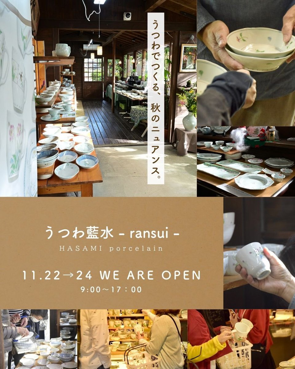 《紅葉とうつわ展 11/22(土)→ 24(月・祝)》 🗓️11/22(土)→ 24(月・祝) 🕘9:00〜17:00 📍波佐見町 窯元 うつわ藍水 - ransui - 皆さまのお越しをお待ちしております☆ #うつわ藍水 #藍水 #ransui #波佐見焼 #波佐見町ふるさと納税 #紅葉とうつわ展 #紅葉スポット pic.x.com/U9oTS6XMRJ