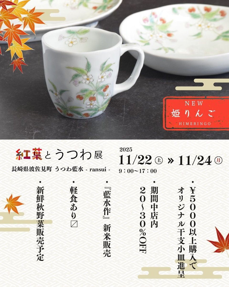 《紅葉とうつわ展 11/22(土)→ 24(月・祝)》 🗓️11/22(土)→ 24(月・祝) 🕘9:00〜17:00 📍波佐見町 窯元 うつわ藍水 - ransui - 期間中¥5000以上購入でオリジナル干支小皿プレゼント🎁 #うつわ藍水 #藍水 #ransui #波佐見焼 #波佐見町ふるさと納税 #紅葉とうつわ展 #紅葉スポット pic.x.com/QDH3tcrIIi