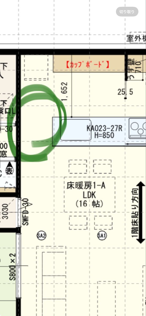 LDK16帖(4×8マス)のI型リビング予定なのですが、 キッチン横1マスって実際狭くないのか…? 同じような間取りの方いらっしゃれば使用感などお聞きしたいです🙇 #一条工務店 #間取り #注文住宅 #新築 #アイキューブ pic.x.com/NOBJR7ccJ0