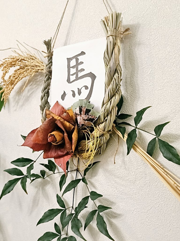 【野草で作るお正月飾り】 🐎2026年は馬(午年) 馬は前進することから「挑戦と飛躍」の年になると言われています。 タチスズメノヒエで縄ない 蹄をイメージした注連縄 尻尾を思わせる稲穂の流れ 馬肉=桜肉 にちなみ 桜葉の紅葉を添えました🍁 #注連縄 pic.x.com/1qVVAN1Hgh x.com/365nitiyasou/s…