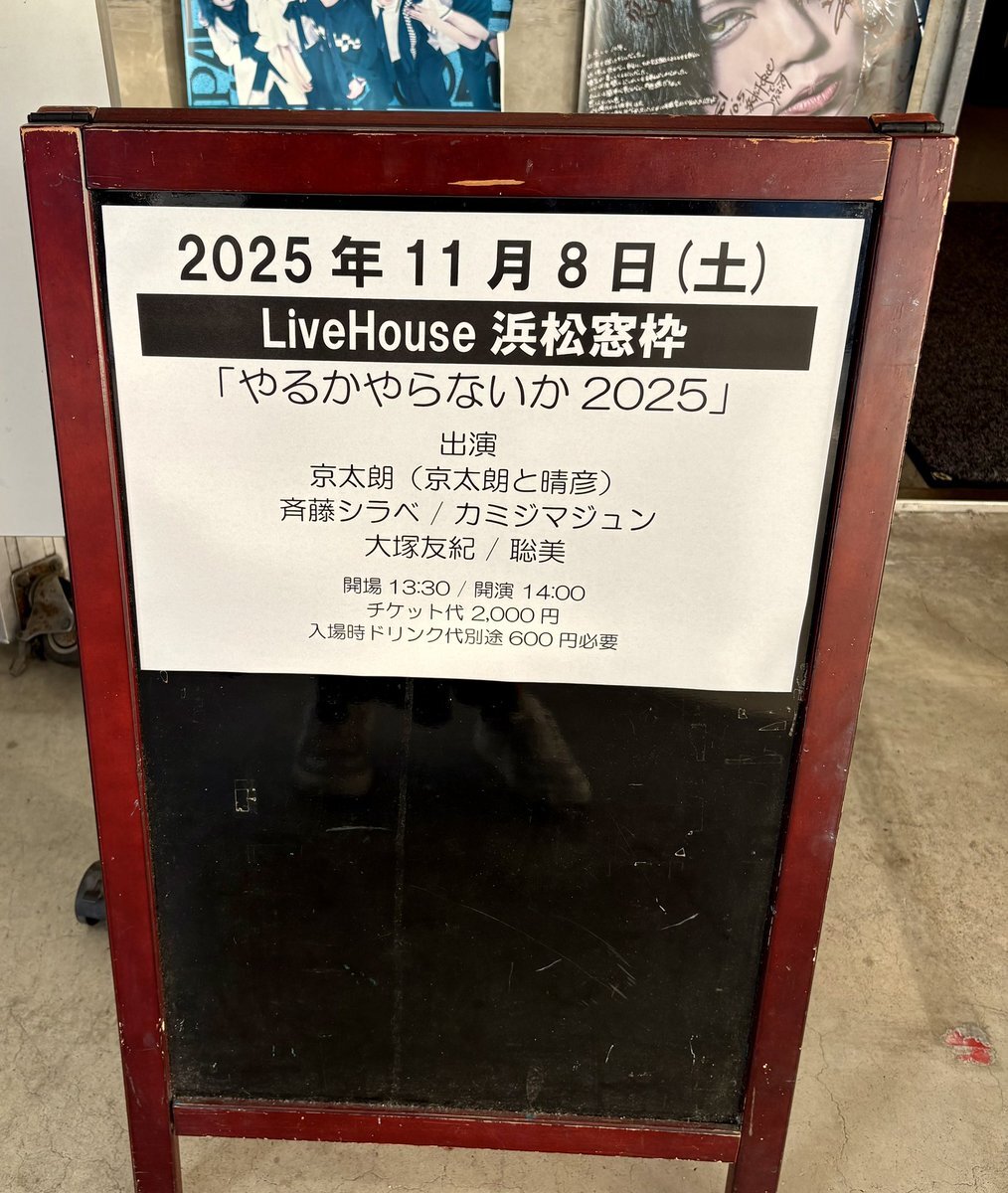 ✨明日はこちら✨ 11/8(土)#浜松窓枠 \やるかやらないか2025 / 開場13:30/開演14:00 料金2000円(D別) 出演 #斉藤シラベ #カミジマジュン #京太朗 +オープンマイクも同時開催!演者としてステージに上がれます🤡 らじコンもライブも頑張るよ💪応援しに来て📣 tiget.net/events/439348