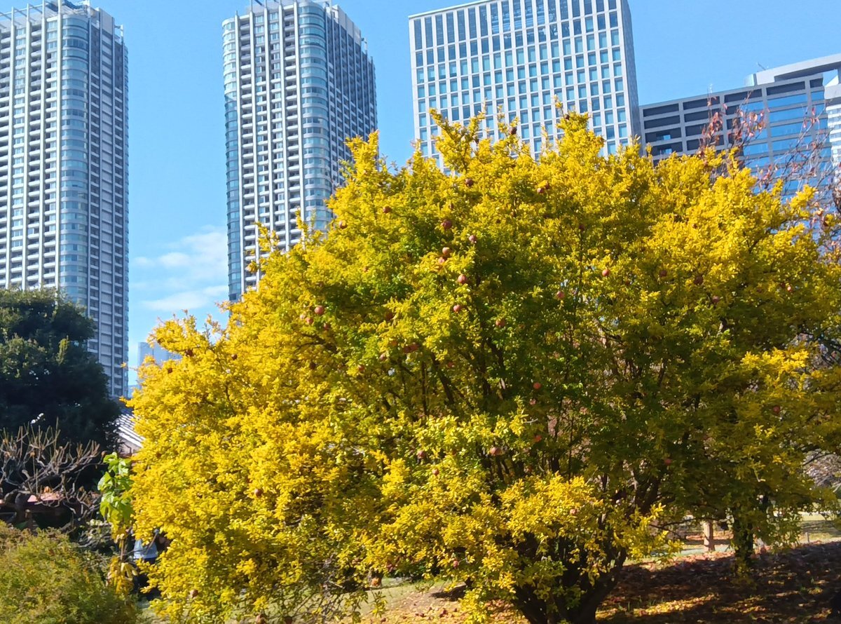 💁♀️🌱✿🌸❀🌿🙆♀️ 浜離宮恩賜庭園 @HamarikyuGarden #花木園 がにぎやかです。サザンカ、花梨の実、子福桜など、いろいろな色彩の植物が目を楽しませてくれます。#浜離宮 pic.x.com/fY9zDWFZNM