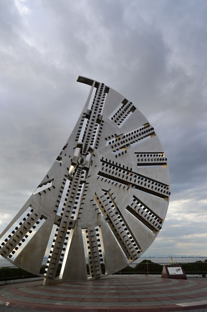 「東京湾アクアライン裏側探検」その8 地上に戻ってきて、シールドマシーンを模したオブジェ「建設記念碑・カッターフェイス」 シールドマシン部は実物大レプリカで、カッタービット(刃)は実際に使用されたものだそうです。 #海ほたる #アクアライン #東京湾アクアライン裏側探検 pic.x.com/HhR1Vlgi6q