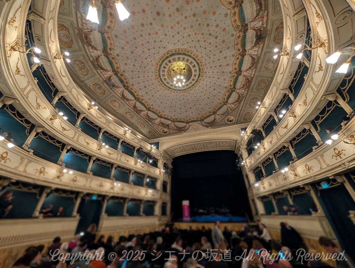 Teatro dei Rinnovati、リンノヴァーティ劇場。 翌日は別の劇場へ。。こちらもまた初めて入ったけど、ロッツィ劇場よりボックス席が1階分多かったよ。シエナ市吹奏楽団の演奏会、選曲も良くて楽しめた! °˖✧◝(⁰▿⁰)◜✧˖° #イタリア #シエナ #海外生活 #写真好きな人と繋がりたい pic.x.com/r3mrwz2zBj x.com/Raffa_ameblo/s…