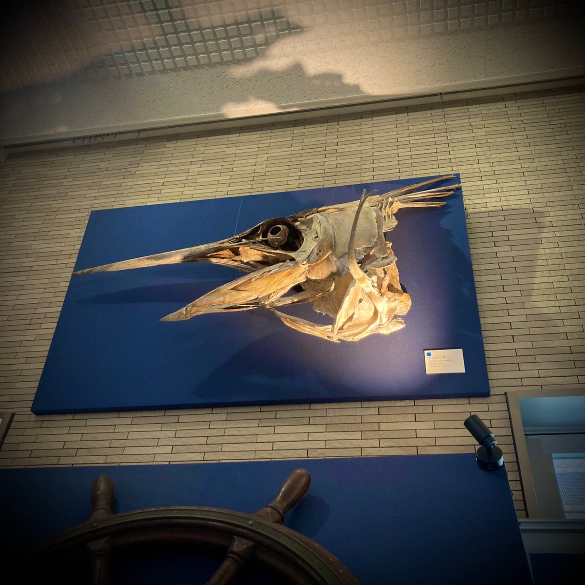 お気づきの方いらっしゃるでしょうか? #クロカジキ#ライトアップ しております💡✨ 曇の日や夕方で暗くなってくると #迫力 があります🐟1階の #雲鷹丸 のコーナーです #海洋大学 #マリンサイエンスミュージアム pic.x.com/bwCxwNvjJk