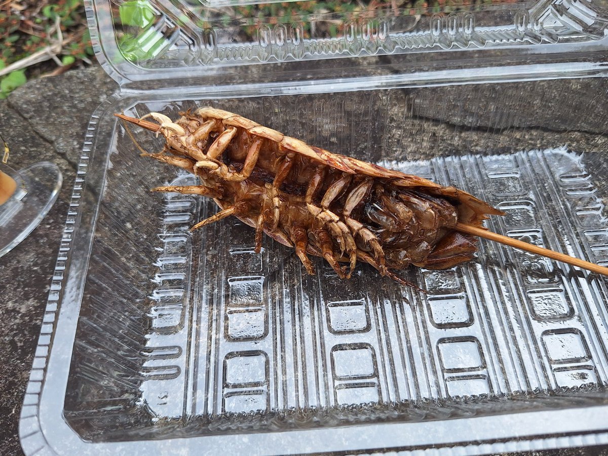 14時!満を持してグソクムシ!✨いただきまーす!「我が人生に悔いなし!(いやまだアル)」海老!海老です!肉はほぼないが、これは即煎餅にして売り出すべき!違和感なし!学生に聞いた漁師の低地網に結構かかる。それを買い取っている。とのこと🦐プレス機でグソク煎にして! #海洋大学 #グソクムシ pic.x.com/mn2OlTzp5q