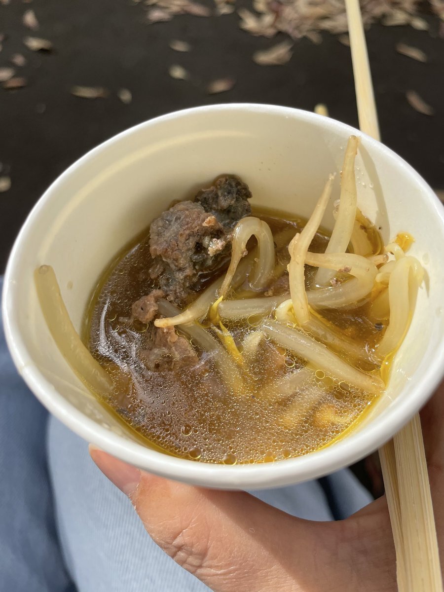 グソグムシは整理券で14時受け取りのため、それまで別のものを食レポ。左 グソクムシ汁。塩胡椒してあり何も知らなければ蟹風味のコンソメ?という味。右 海亀スープ。牛テールのような噛みごたえ。ときどきプリプリ部分あり。味はマグロと牛の間くらい?癖なし #海洋大学 #海鷹祭 #グソクムシ #海亀 pic.x.com/UfIzPLtFEu