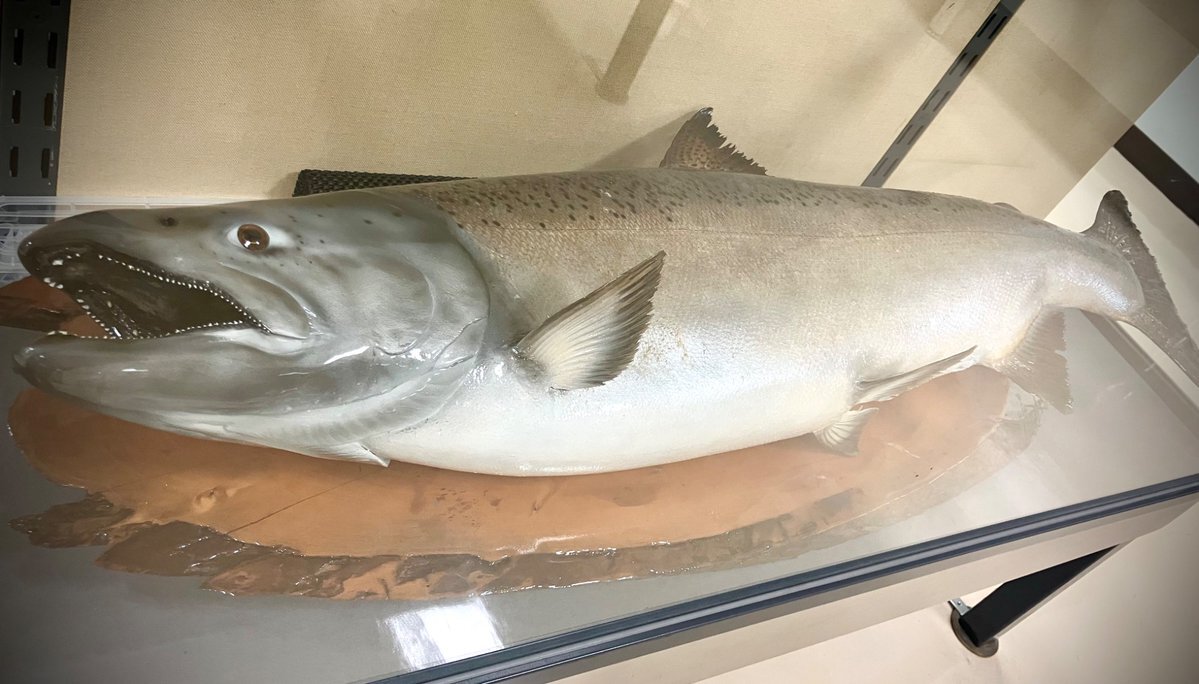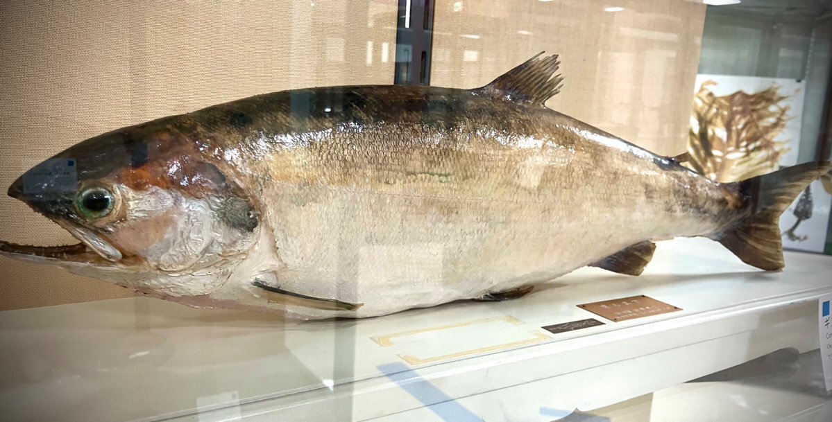 鮭の漢字は魚へんとつくり「圭」でできています🐟「圭」の部分を分解すると「十一十一」になることにちなんで11月11日は #鮭の日 に制定されています🐟🐟🐟 #ミュージアム にはサケ科の剥製がたくさんありますので注目してみてください👀 #海洋大学 #マリンサイエンスミュージアム pic.x.com/oojjImYFuU