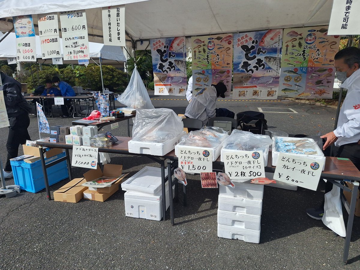 #島根活 スタートは品川 #海洋大学 #海鷹祭 昨年はモタモタしていてお魚買えずだったけど今年は買えた✨ #浜田市  #浜田市水産物ブランド化戦略会議 とんちっちブランドのアジ、のどぐろ小、カレイ一夜干しを購入。 保冷バッグも準備してきたよ 価格も安いし凄い人気Σ(゚Д゚〃) #どんちっち pic.x.com/A1pEQWCubs