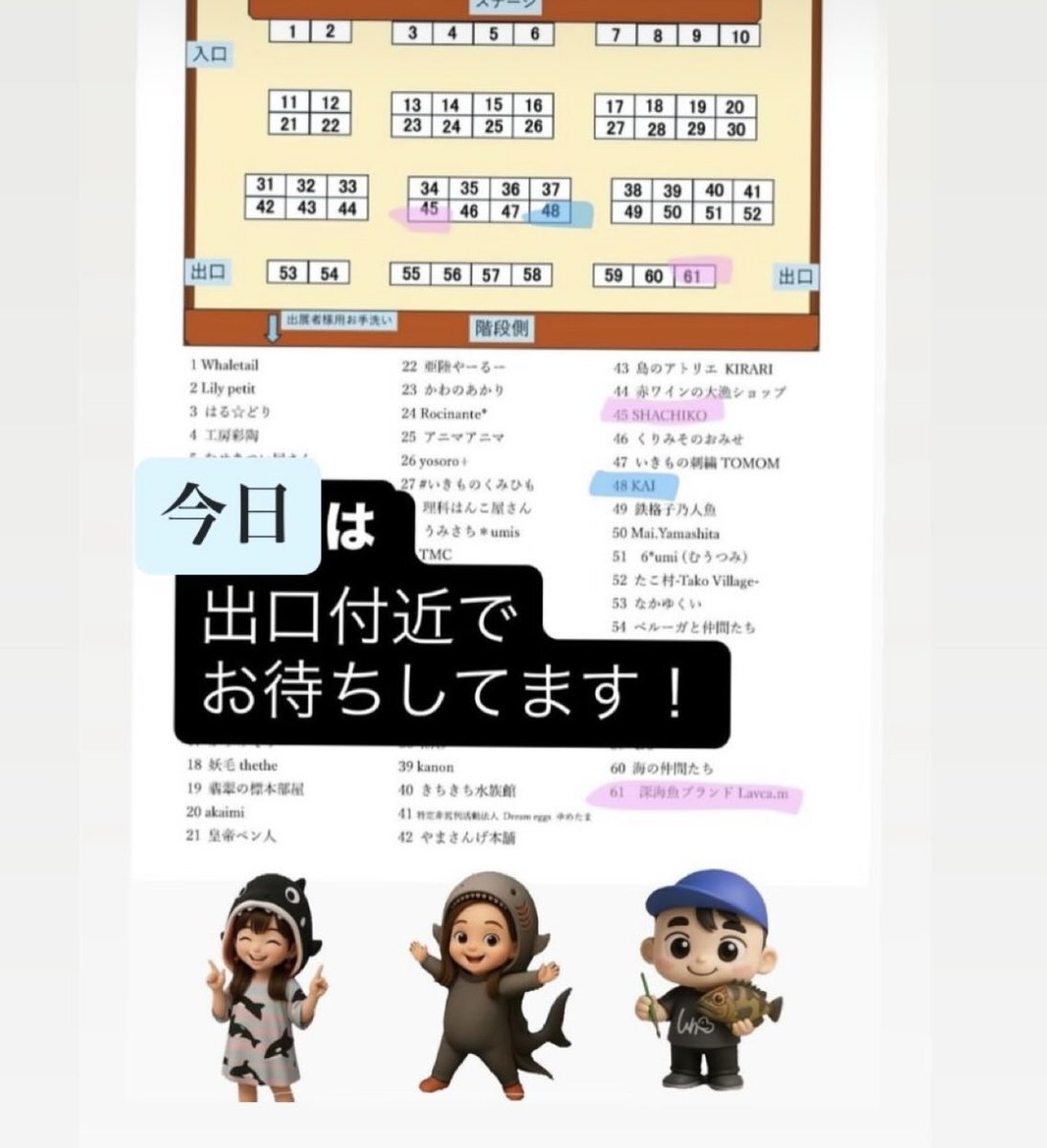 いよいよ週末は、うみたかマルシェ! 出口付近でお待ちしてます🐟 #うみたかマルシェ #海洋大学 #東京海洋大学 #shachiko410 #MLavca #中学生イラストレーター pic.x.com/DPgNPzpq8t