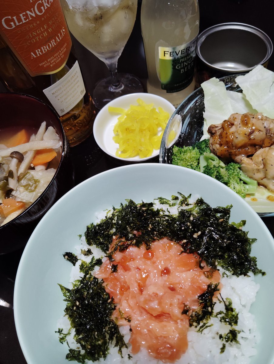 #夕ごはん #海鮮丼 #骨付きブラックチキン缶詰 いただきます🍻 意外と😋この缶詰美味しかも 🥃フィーバーツリーハイボール 旨い👍️ 寒くなりましたね〜 暖かくお過ごし下さい😊 #Netflix 見ながら pic.x.com/yb8iYAAaJu