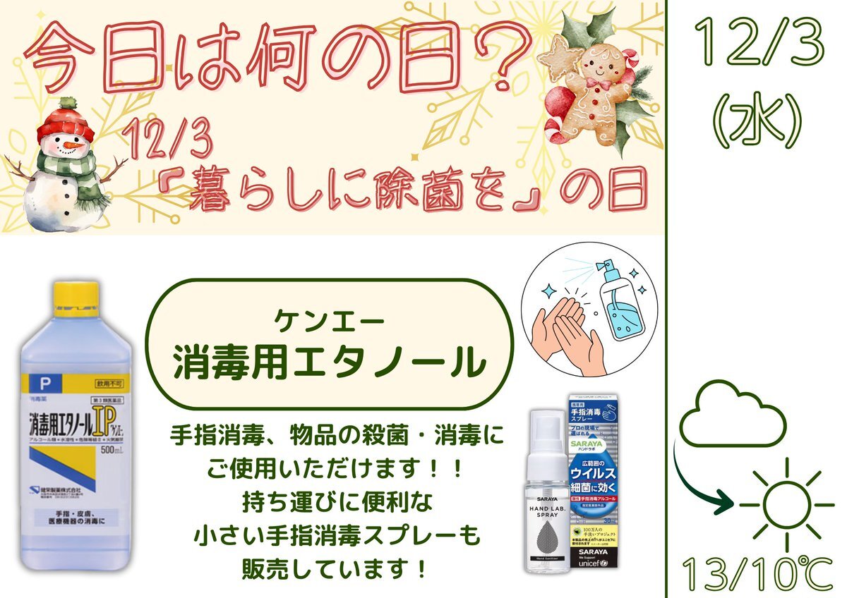 おはようございます #田端、曇りのち晴れ #企業公式が恐竜とじゃれあう部 🦖「#消毒」 12/3 #暮らしに除菌をの日 #消毒用エタノール 感染症が流行っています🥺 しっかりと感染対策をして元気に過ごしましょう!! #企業公式が毎朝地元の天気を言い合う #企業公式冬のフォロー祭り pic.x.com/x4cmL3LorM