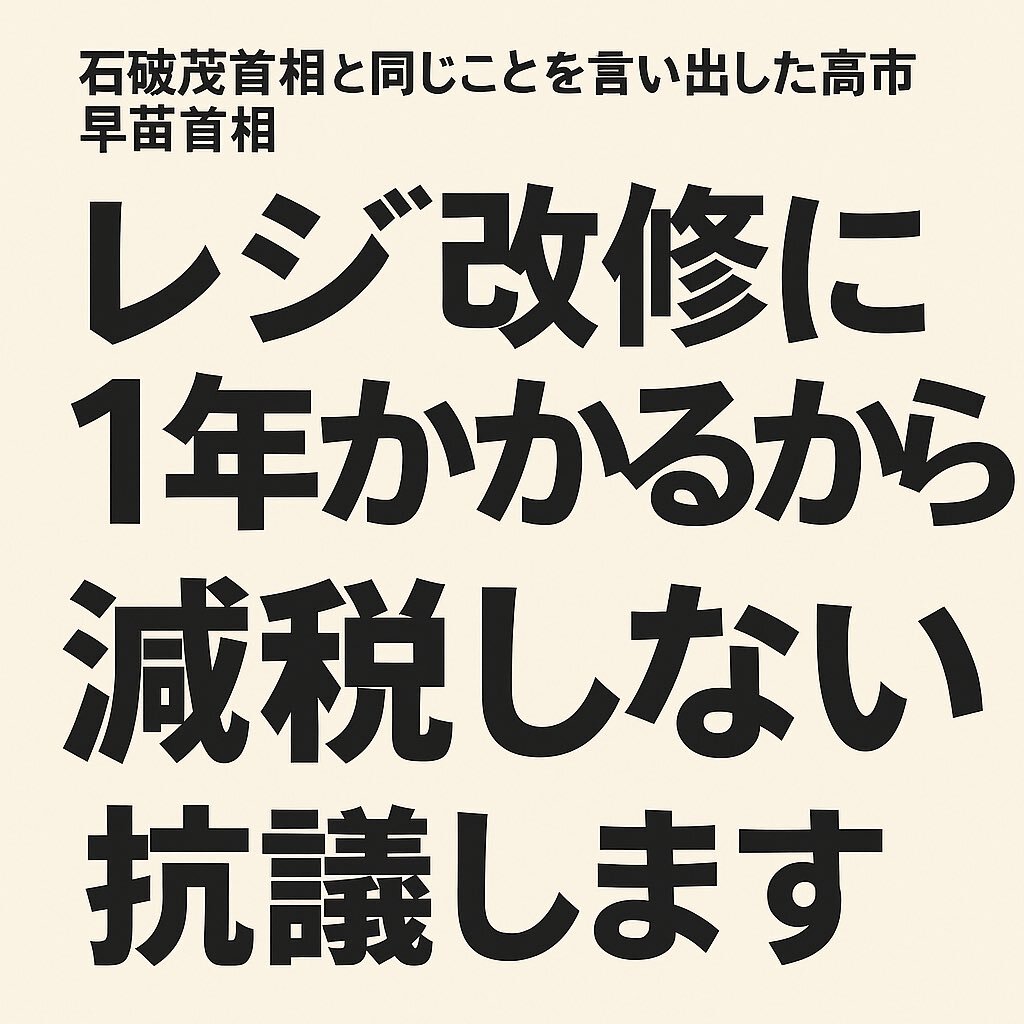 何度も言いますが、1989年に「消費税」が導入された際、法律の成立から施行までは僅か3ヶ月でした。高市首相は「消費税減税」を求める声に対し「レジシステムの改修などに一定時間掛かる」などと言っていますが、改修は「一晩」で出来ると答えた事業者もいる通り、やらない為の口実に過ぎません。