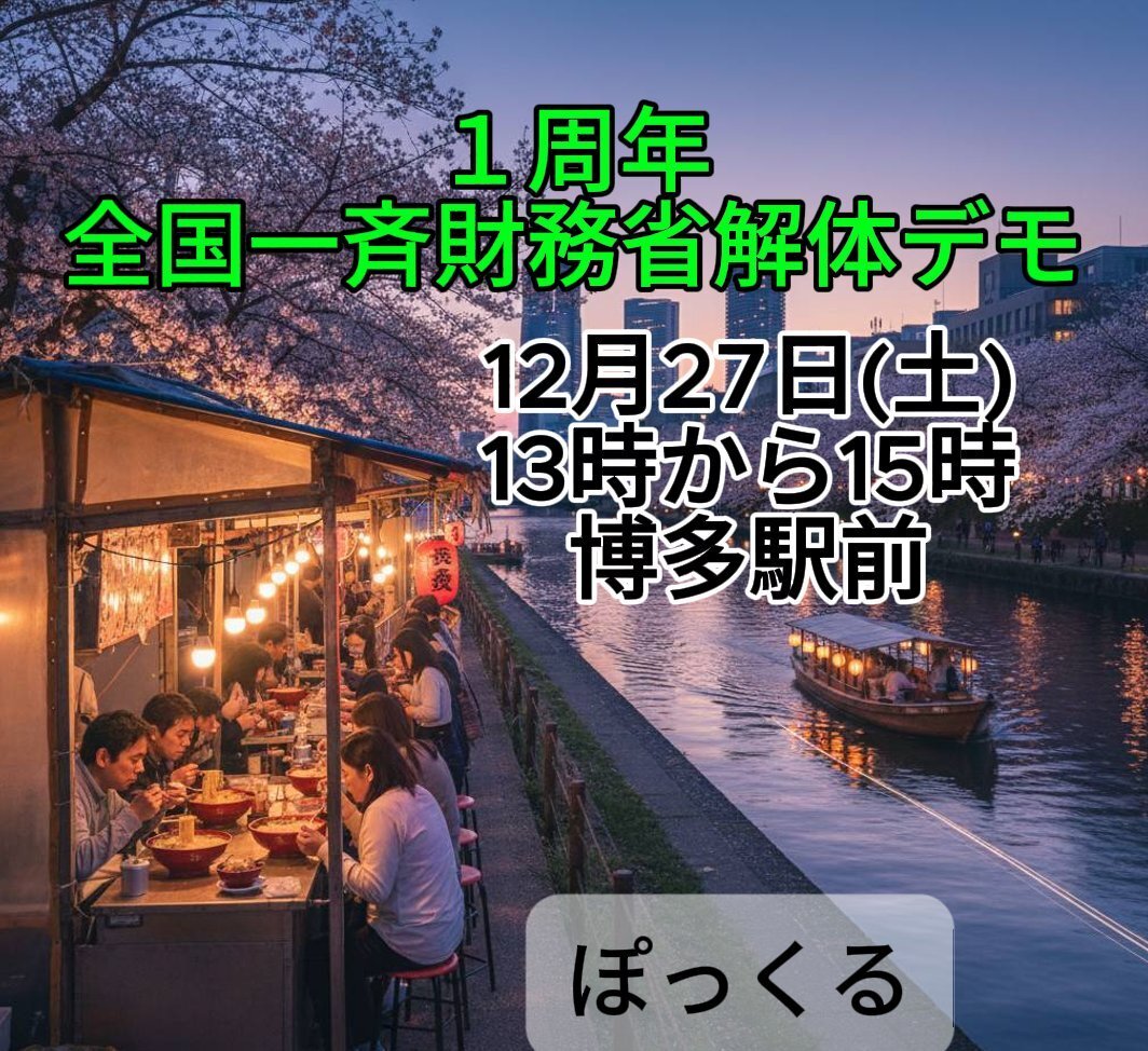 #財務省解体デモ #消費税廃止 12/27【13時~15時】全国開催デモのお知らせ 場所:福岡 博多駅前 主催:ぽっくる様 アカ不明 プライマリーバランス黒字化目標廃止一択(PB黒字化目標不要) 財政の民主化運動で増税反対!積極財政!緊縮財政停止!打倒ザイム真理教 x.com/usagidesyo/sta… #大谷翔平 pic.x.com/66q2t7422E