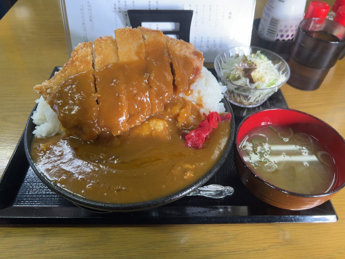 #長野グルメ #カツカレー #清水屋 今年②回目訪問、本丸本命 「カツカレー」(普通盛) を頂きました(o^^o) 浅間山を彷彿とさせる米山🍚に肉厚なカツがドーンと載ってる様は圧巻😆麓にはカレールーの海が✨ アッサリ系のカレーなので重くなく最後まで美味しく頂きました! ご馳走様でした😋 pic.x.com/aJQOOriMoN x.com/rb26n1spec/sta…