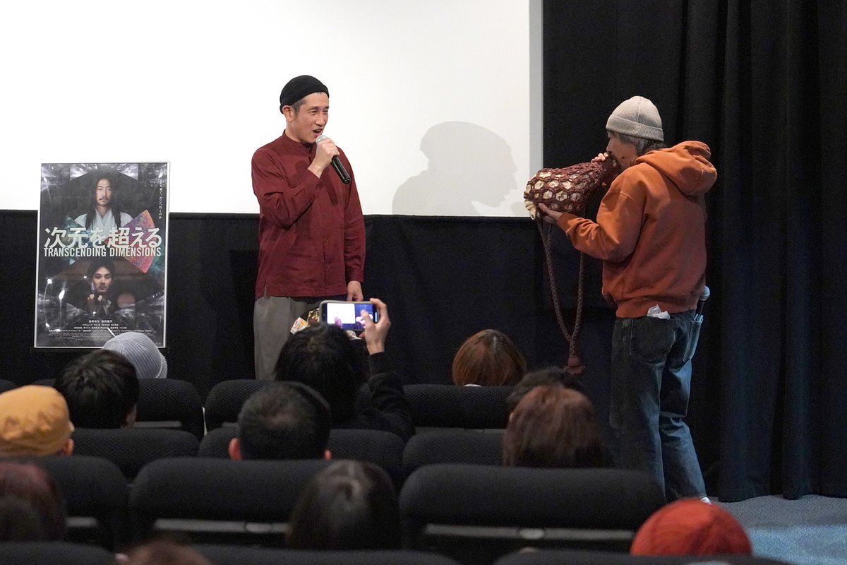 #次元を超える#渋川清彦 さん #豊田利晃監督 舞台挨拶付き先行上映🔥あと1人で満席🙌たくさんのご来場に感謝申し上げます! "次元を超える準備はできているか?”と11/21(金)~の高崎での上映を知らせる合図の如く法螺貝を吹いてくださった豊田監督です🚀 theaterpass.net/movie/1549/2?m… pic.x.com/YFe2pq8NFs