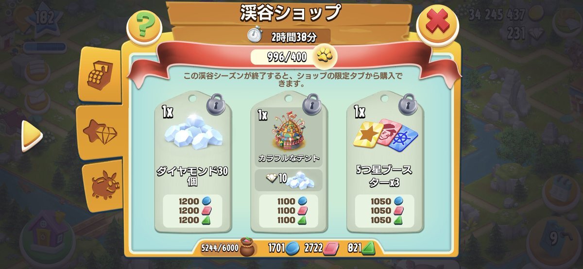 #ヘイデイ #渓谷 ルーレットチャンスはあと1回が限界っぽくて貯金箱なしだとカラフルなテントまであと緑が279足りない😣 今ガソリン9+ルーレット1回分で動物3匹を園に送れたとして1色279も行くっけ~😓今回欲しい物は緑トークン多いなって思ってた気がするから心当たりはある🤦♀️やってしまったなぁ🫠 pic.x.com/c1JrfnhsVH