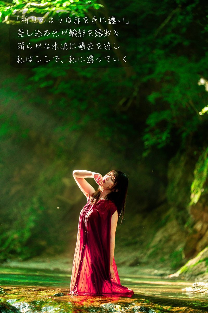 「祈りのような赤を身に纏い」 差し込む光が輪郭を縁取る 清らかな水流に過去を流し 私はここで、私に還っていく #ポートレート #渓谷 #光のカーテン #ファインダー越しの私の世界 #キリトリセカイ pic.x.com/XQ5CSHKDyf