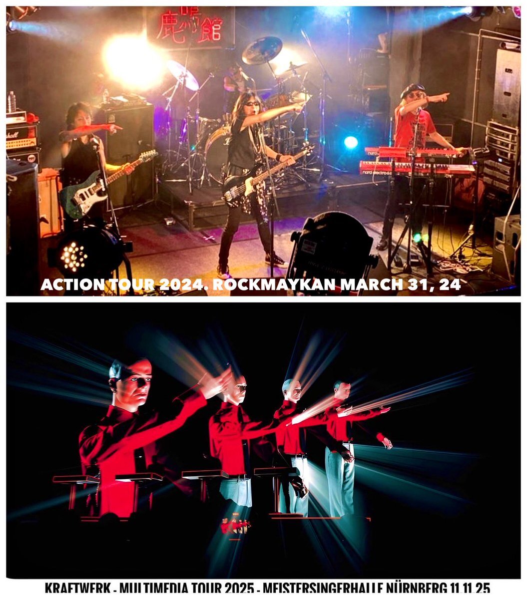 おお、クラフトワークがマイバンドのACTIONポーズを❣️🤣👉👉👉👉 Oh, Kraftwerk doing the My Band ACTION pose❣️🤣 #渡辺邦孝 #KunitakaWatanabe #エスカルゴアラカルト #EscargotALaCarte #デスクリムゾン #DeathCrimson #アクション #Action #アンコール音楽工房 #クラフトワーク #Kraftwerk pic.x.com/rGSDCr2hzM