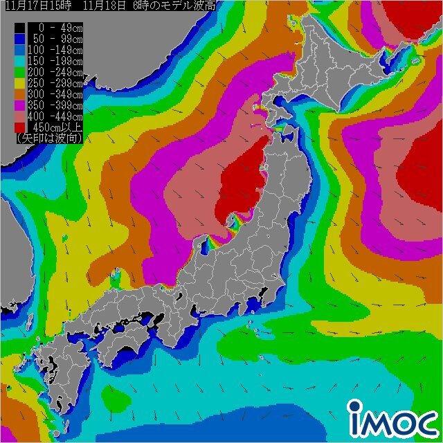 11月18日(火) 明日の湘南(鵠沼付近)は、朝のサイズは腰前後、風は北東のやや強め。昼は腹胸、風は南西の強め。夕方は胸肩、風は西南西のやや強めとなるでしょう。特に昼の風は注意が必要です。#湘南 #波予想 #波情報 #サーフィン