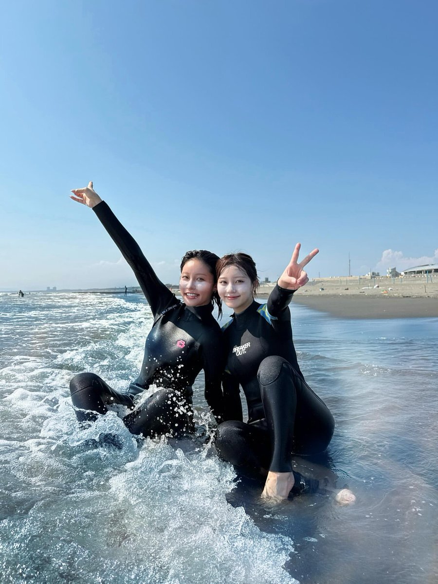 王林ちゃんに誘ってもらって2人でサーフィンしたよ🏄‍♀️🌊サーフィンの乗り方を習って写真も撮ってもらいました! 人生初サーフィン!楽しかったなっ🍎✨✨ #サーフィン #湘南 # #surfing #ocean #sea pic.x.com/r5WtcvaS7x