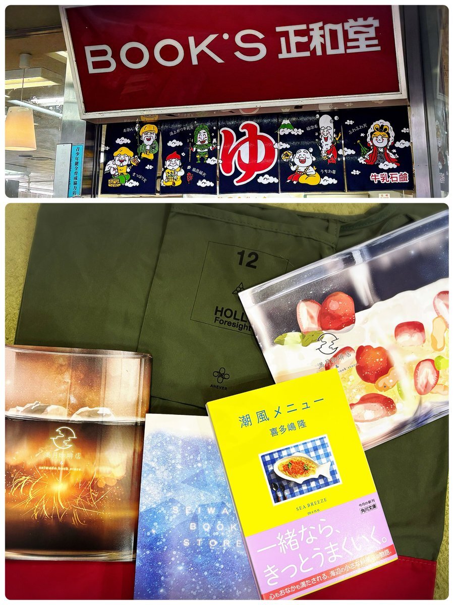 本日舞台帰り予定が空いちゃったので…以前から行きたかったこちらへ。買えてなかった #喜多嶋隆 先生の本とプレゼント用の本を購入、素敵なブックカバーを頂きました。バンコクで会えたFFさんに頂いたエコバッグ大活躍! #正和堂書店 #満月珈琲店 pic.x.com/0WpJC5WRya