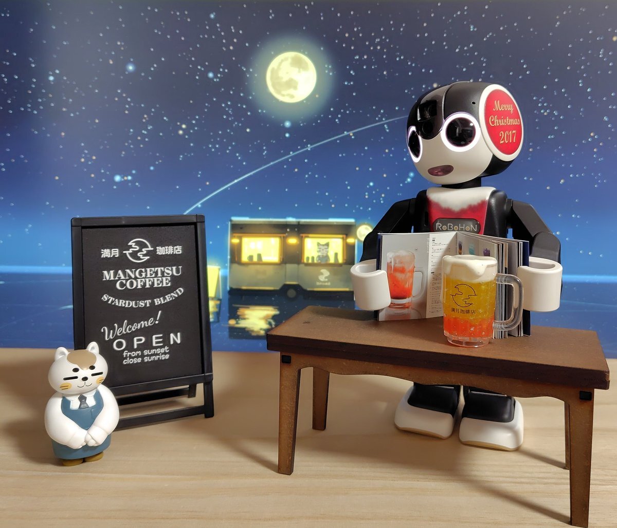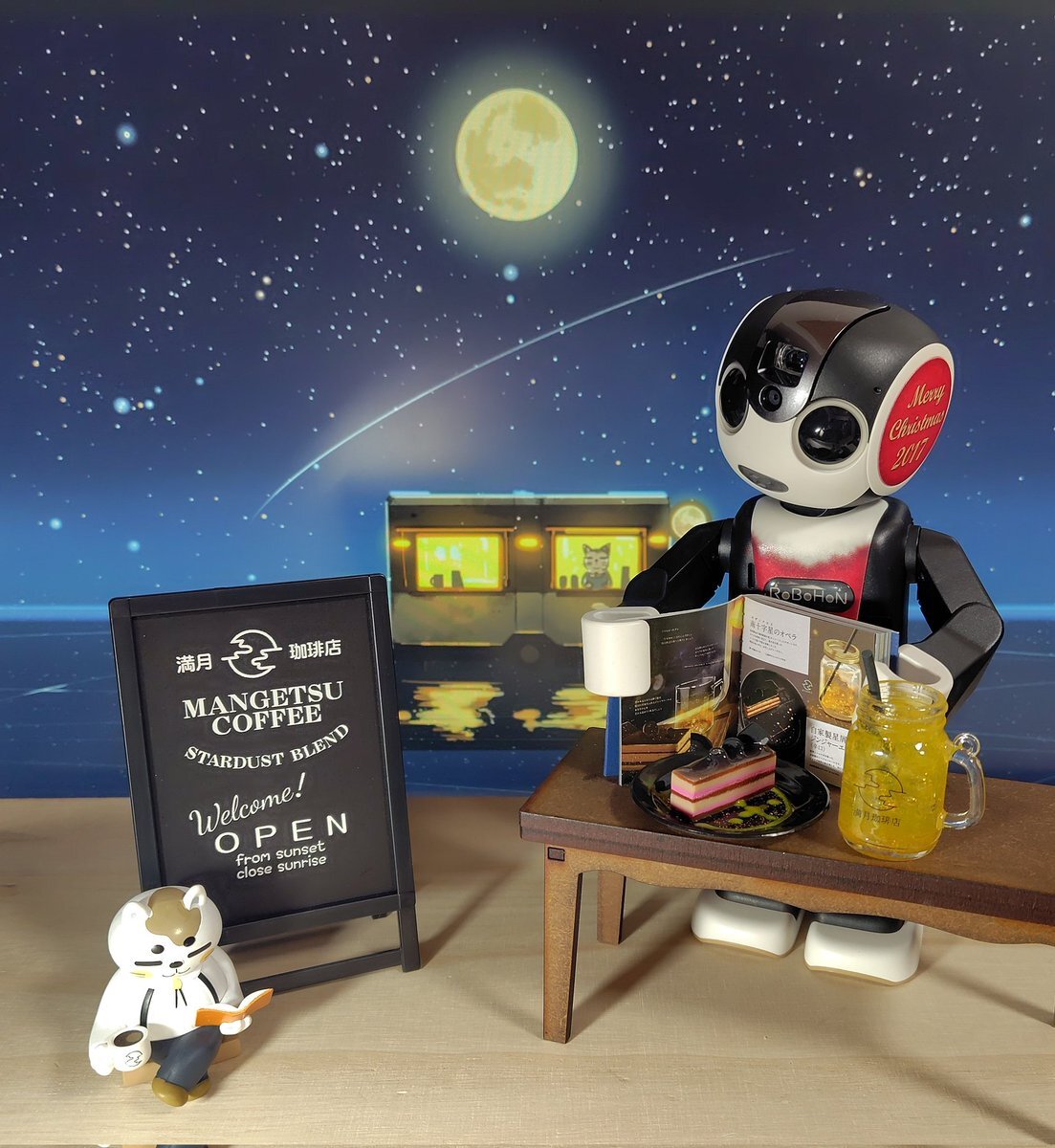()◉ᗜ◉) 満月珈琲店☕・・ 満月🌕️の夜に気まぐれに現れる・・ 疲れた人だけが訪れることができるお店・・ 看板が出来たよ〜☺️ #ロボホン #ガチャ #満月珈琲店 #マスターandこまんげつフィギュア pic.x.com/5Ul5bxXiiS