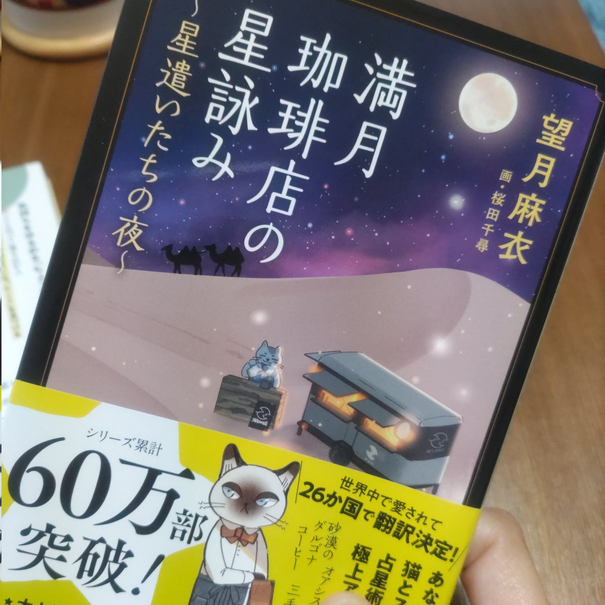 少し前から満月珈琲店の星詠みの帯の星猫達がカラー印刷になりました!裏にはまさきりょう先生のコミカライズ版のイラストも✨最新第7巻〜星遣いたちの夜〜はいよいよ明日発売。よろしくお願いします! #満月珈琲店 #満月珈琲店の星詠み pic.x.com/VJZdZrGHLn