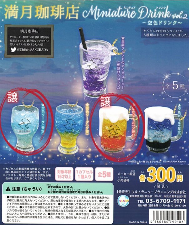 幻想的で美しいドリンクメニューをリアルに再現「満月珈琲店 ミニチュアドリンク」第4弾が、カプセルトイで新登場です。 item.rakuten.co.jp/auc-treasurema… #満月珈琲店 #満月珈琲店ミニチュアドリンク #空色ビール黄昏 #流氷のクリームソーダ #星屑ブレンドのアイスコーヒー #スコールのジュース pic.x.com/XIryb6j8Lv