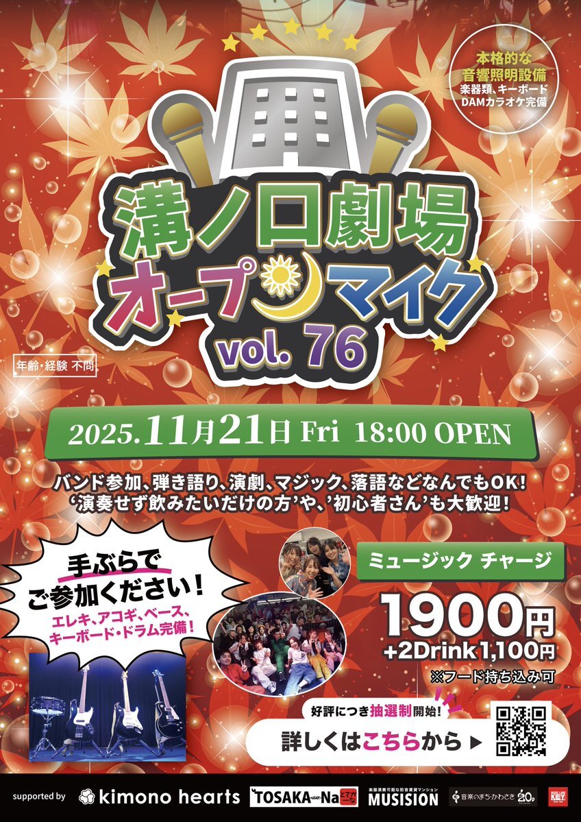 📣オープンマイク受付開始 🗓️開催日程 11月21日(金) 18:00 OPEN 本日10月1日より抽選申込 受付開始いたしました! 以下よりご応募ください。 mizogeki.com/om 皆様のお越しを心よりお待ちしております✨🌈 #溝ノ口劇場 #キモノハーツ #とさかーな pic.x.com/jCk3VoP1Xj