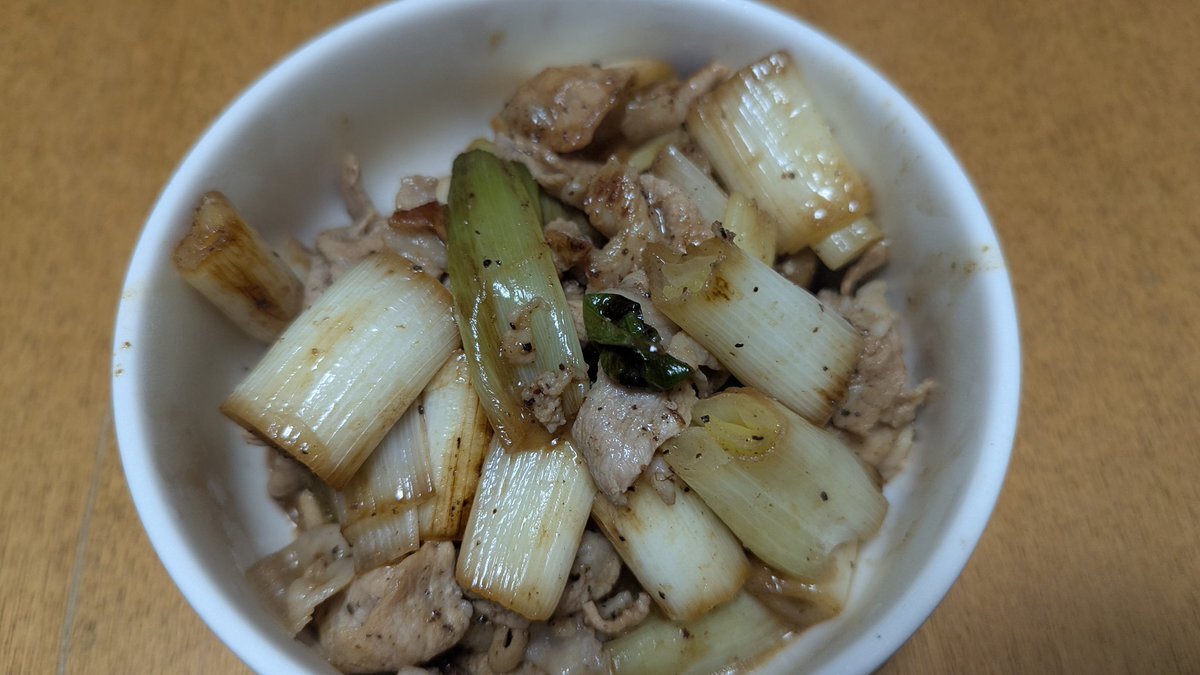 今日のアテは豚ネギ炒め 本当はこれに白菜追加して白菜鍋にしようかと思ったが、微妙に暖かいから炒めにした ネギもよく火が通って甘くなって(゚д゚)ウメェ!! #滅びよ人類 pic.x.com/C4niPZT2lN