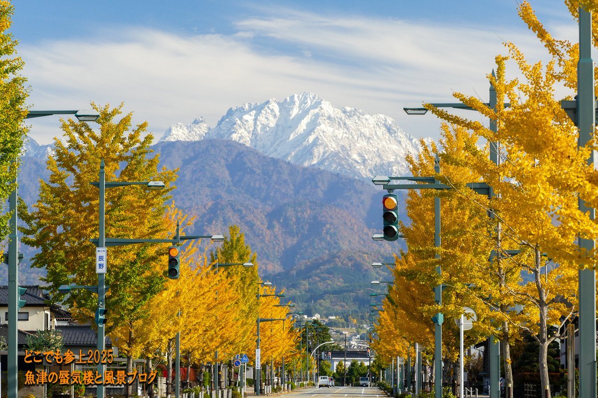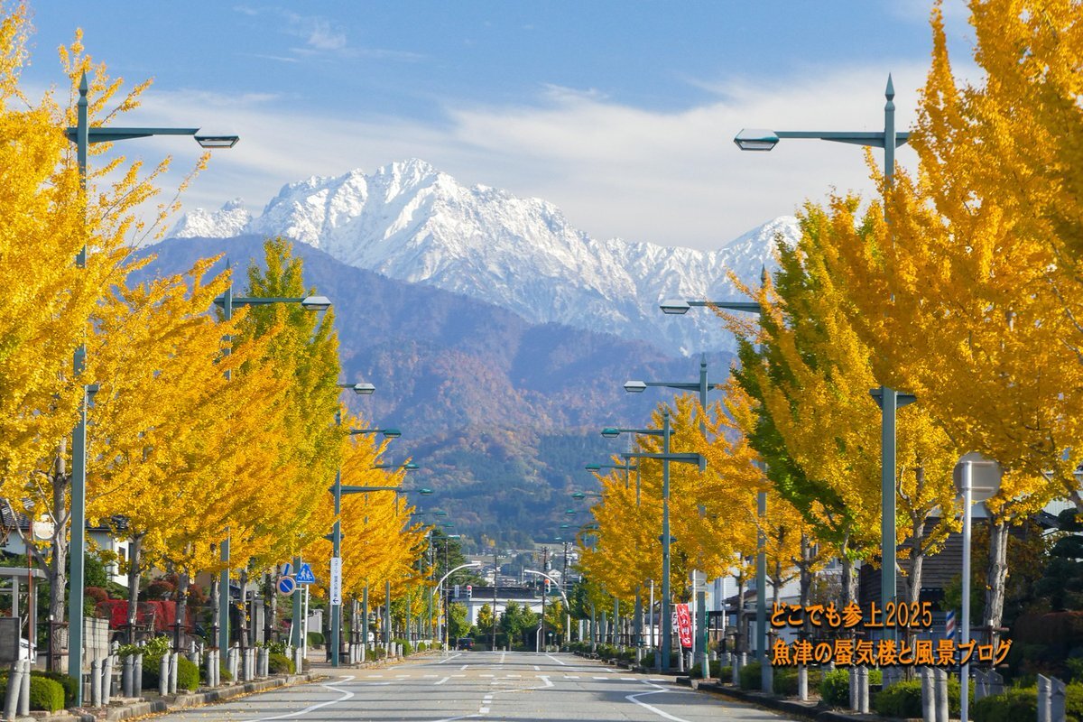 イチョウ並木の向こうに「剱岳」、色付きはこれから! 2025年11月12日撮影 詳しくは下記URLで dokodemosanzyounew.seesaa.net/article/518798… #富山観光 #富山絶景 #写真 #富山 #観光 #富山県 #富山情報 #滑川 #滑川市 #イチョウ #イチョウ並木 #立山連峰 #雲のアート #剱岳  #雪山 pic.x.com/zot9sDzrtN
