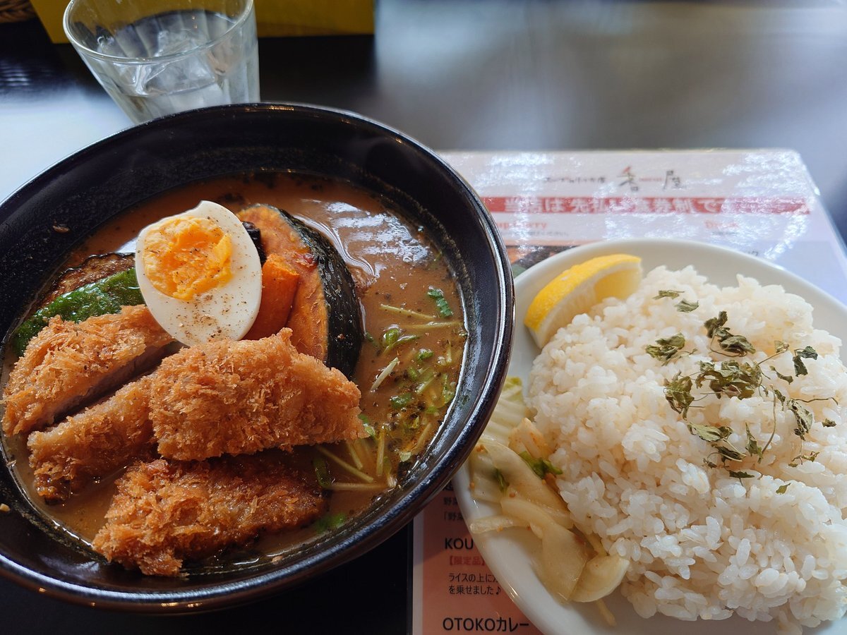 旭川神楽のスープカレー香屋。 黒板メニューの「ヒレカツ&ベジ4辛」 ライスには乾燥イタリアンパセリとレモン、スープにはローリエと水菜が入ってまさに「香」寄りな感じ。キライじゃない😊 〆は何処かで見た濃厚ソフト。少し休まないと高速乗れないなぁ😪 #さんれんきゅー #激務 pic.x.com/RVqeYrqFq4