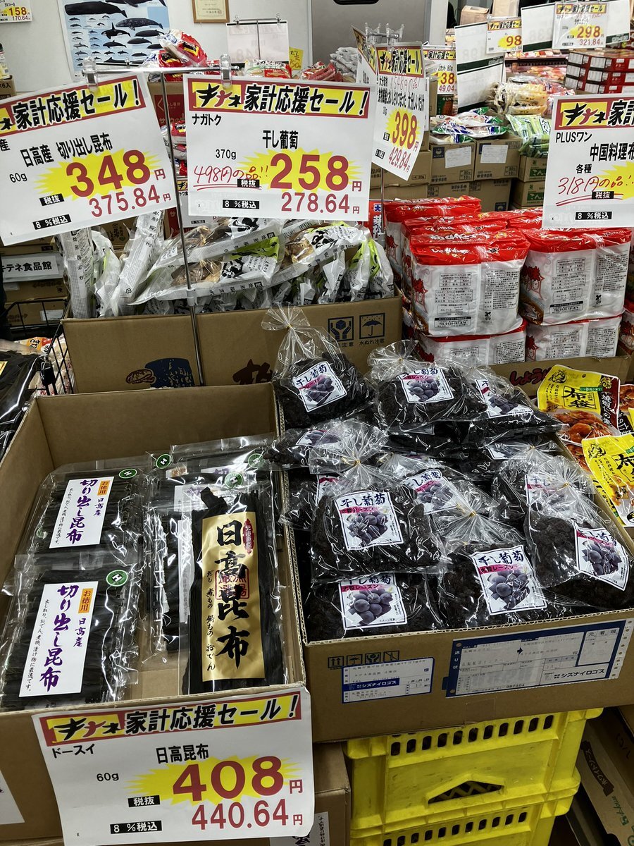 おはようございます!キテネ食品館月寒店です。本日の激安商品は、ナガトク 干し葡萄370g税込538円の品がなんと!税込279円!みなさん本日も月寒キテネにキテネ✌️ #キテネ食品館 #吉本水産 #タナカ商店 #札幌Twitter会 #さっぴよ #グルメ #札幌 #月寒 #スーパー #激安 pic.x.com/8v3KFyD6aK