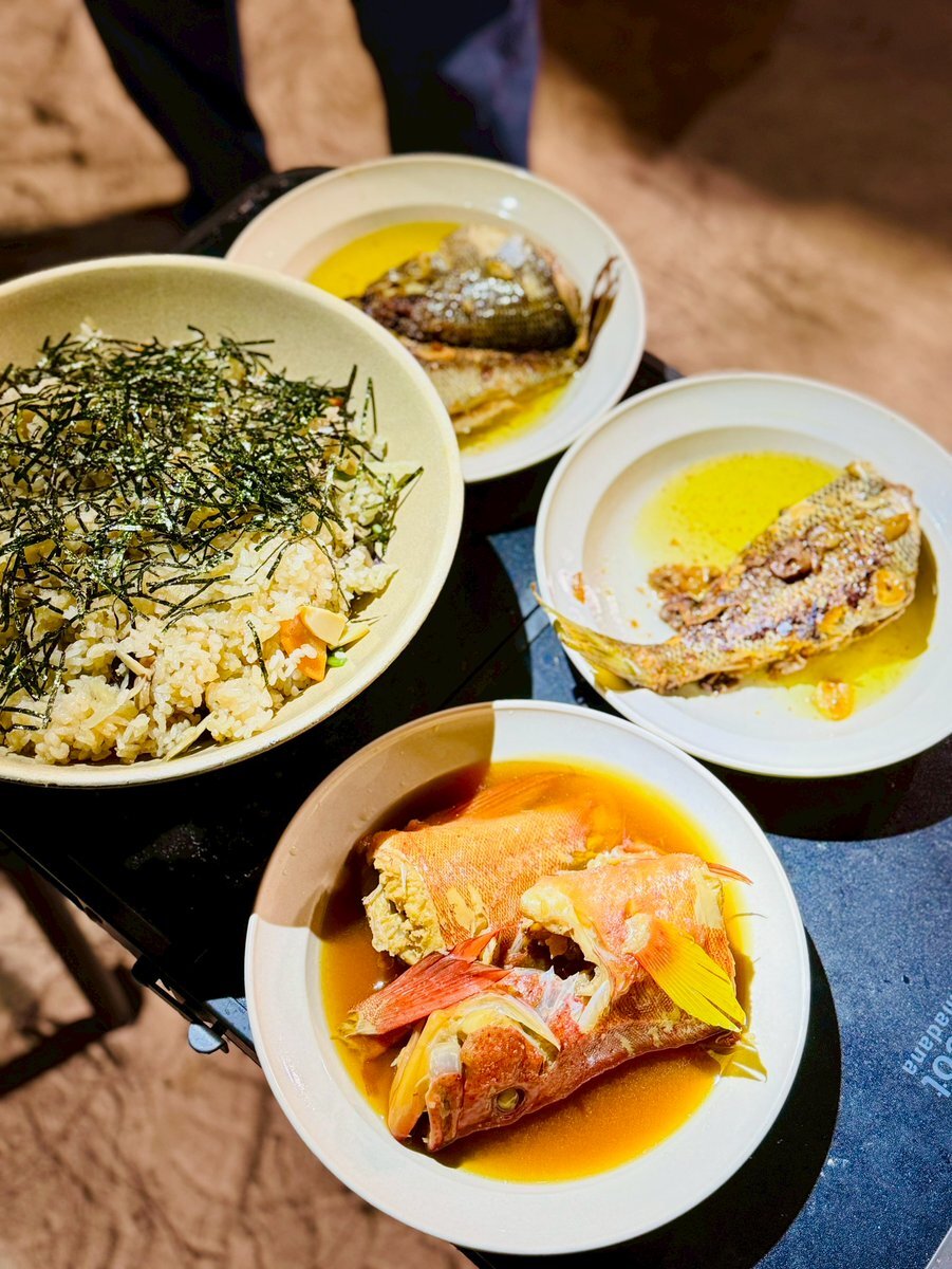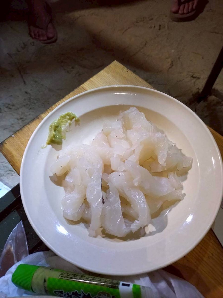 「バえる画像」を良しとしないおじさんたちですが、釣れた魚に関しては違います。40㎝級のシロダイ(沖縄で「シルイユー」)です。刺身、ブイヤベース、鯛飯にしていただきました。Orionビールが足りなくなるかもしれません。 #沖縄 #無人島 #キャンプ pic.x.com/ubb4LQZQ4j