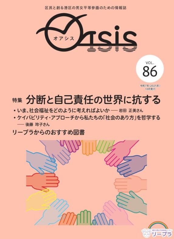 「OASISオアシス」86号を発行しました🍂テーマは「分断と自己責任の世界に抗する」です📚HPからもご覧いただけますし、#リーブラ でも配布しています☺️ minatolibra.jp/oasis86/ #東京都港区 #男女平等参画センター #ケイパビリティ・アプローチ #社会福祉を考える #図書 #無料配布 #自己責任 pic.x.com/Y09bIi4Gls