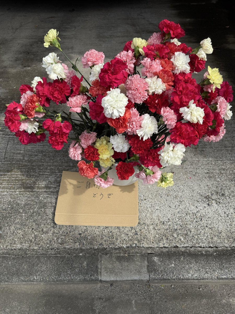 昨日ワールドフェスタヨコハマで使ったカーネーション。まだまだ綺麗に咲いていたので、廃棄せず持ち帰って、自宅前で無料配布中!いつもすぐなくなります。 #無料配布 #カーネーション pic.x.com/QF9m0nKxug