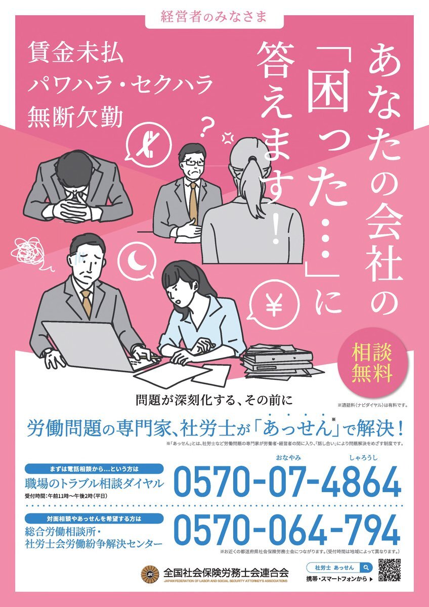 経営者の皆さま、こんな問題をかかえていませんか? #遅刻 #無断欠勤 等の勤務態度に問題のある社員がいる。 #給与 等の待遇面で、社員から不満をぶつけられている。 非対面の話し合いで解決できるかもしれません! 対面での#労働相談 も受付中!(一部地域除く) shakaihokenroumushi.jp/Portals/0/reso… pic.x.com/uRRtYCADeo