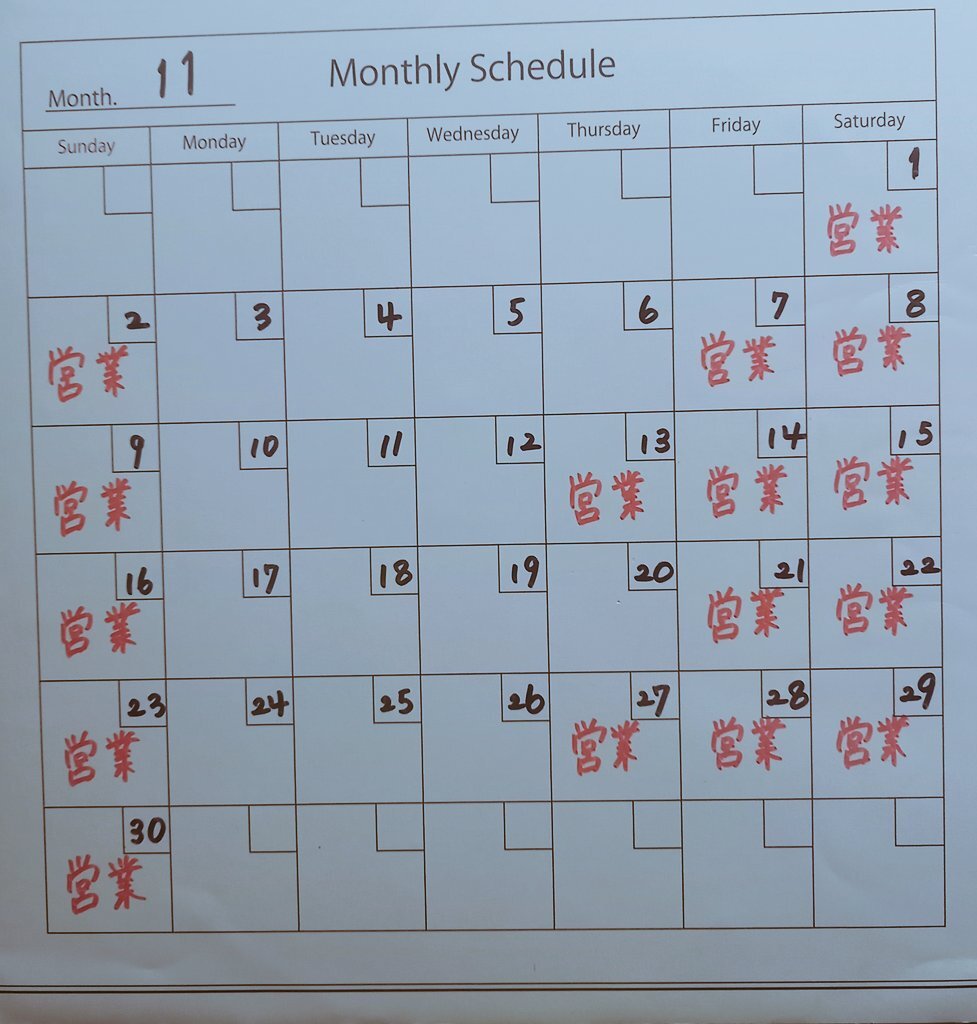 11月営業時間! 月曜日〜日曜日 18時〜翌2時〜5時 (2時までご来店中の方! ご来店の方!継続営業) 定休日 23日、30日 #錦糸町 #居酒屋 #沖縄オリオン樽生ビール #サッポロ赤星瓶ビール #メガハイボール #生絞りサワー各種 #もつ焼き #焼鳥 #串焼 #肉刺し #葉タバコ不可 #電子タバコ可