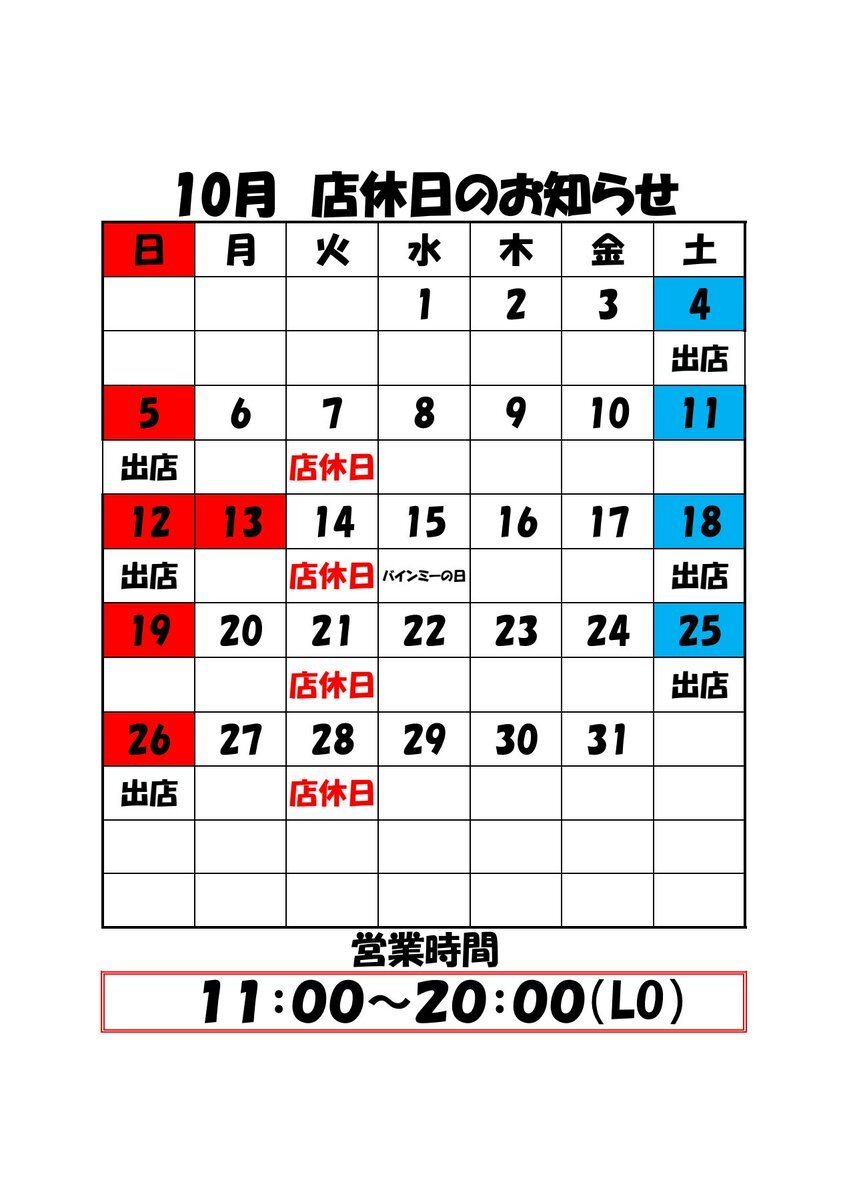 \10月もよろしくお願いします!/ Conny's Banhmiのスケジュール公開🥖✨ 🗓 出店:4㈯・5㈰・12㈰・18㈯・25㈯・26㈰ 🍂 店休日:毎週火曜+出店日 健軍商店街&出店先でお待ちしています! #バインミー #熊本ランチ #健軍 #コニーズバインミー pic.x.com/f2CmeG5nHg