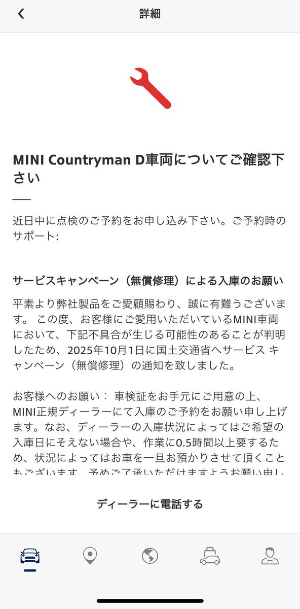 アプリに、サービスキャンペーン通知(不具合の無料修理通知)がきてました うちのカントリーマンは対応済 テールゲートがちゃんとロックされなくなるらしいよ #miniがある生活 #燃費 #自動運転 #MINI #U25 #カントリーマン #BMWmini pic.x.com/T5ANYQKAYv